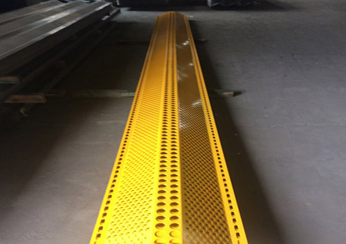 用途:主要用于煤礦、焦化廠、電廠等企業工廠的儲煤場;港口、碼頭儲煤場及各種料場;鋼鐵、建材、水泥等企業各種露天料場;農作物防風,沙化天氣防塵等惡劣環境;鐵路、公路煤炭集運站儲煤場、建筑工地、道路揚塵、高速公路兩側等。單層擋風抑塵墻抑塵效果可達65~85%,雙層擋風抑塵墻效果可達95%以上;擋風抑塵墻不僅外形美觀,維護成本低并且具備防火,防盜等優點;完全避免了以往表面覆蓋、噴淋技術、全封閉幾種措施反復投資、耗資巨大、受場地和作業要求限制、抑塵效果不佳的問題。